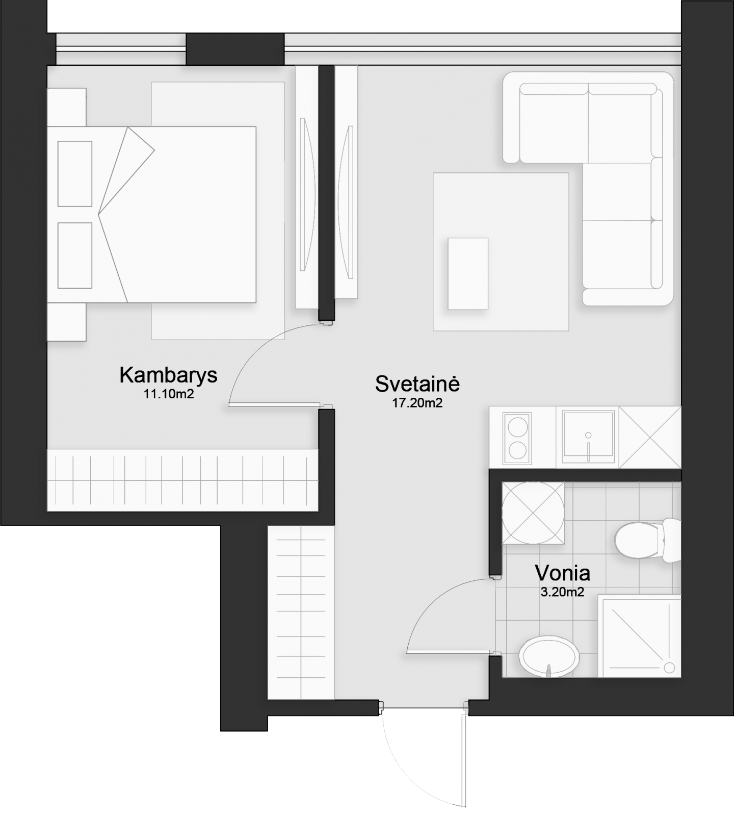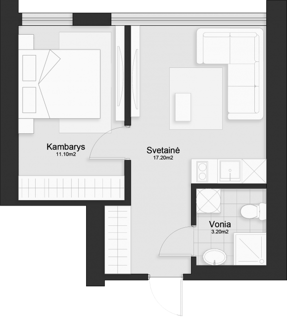 - Svetainė: 17.20 m²