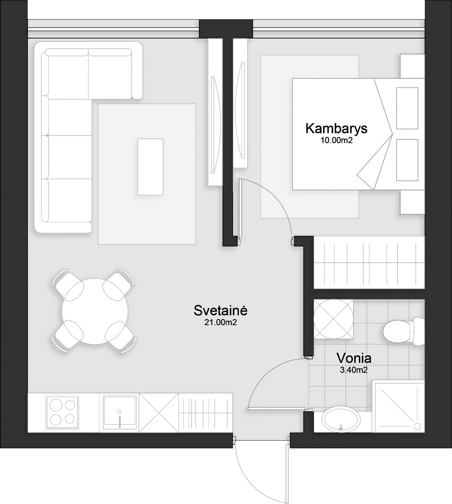 - Svetainė: 21.00 m²