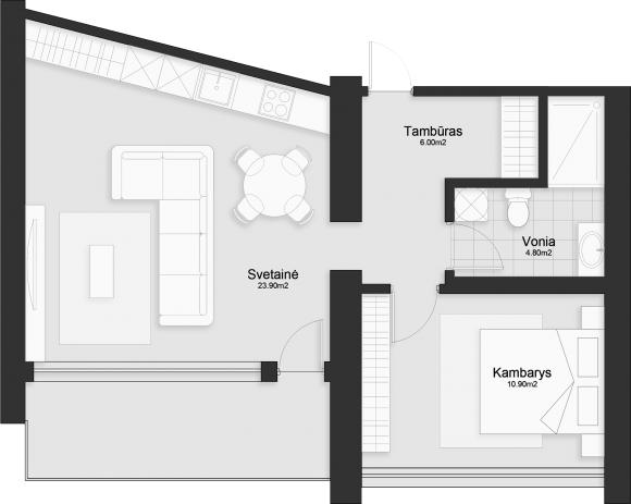 - Svetainė: 23.90 m²