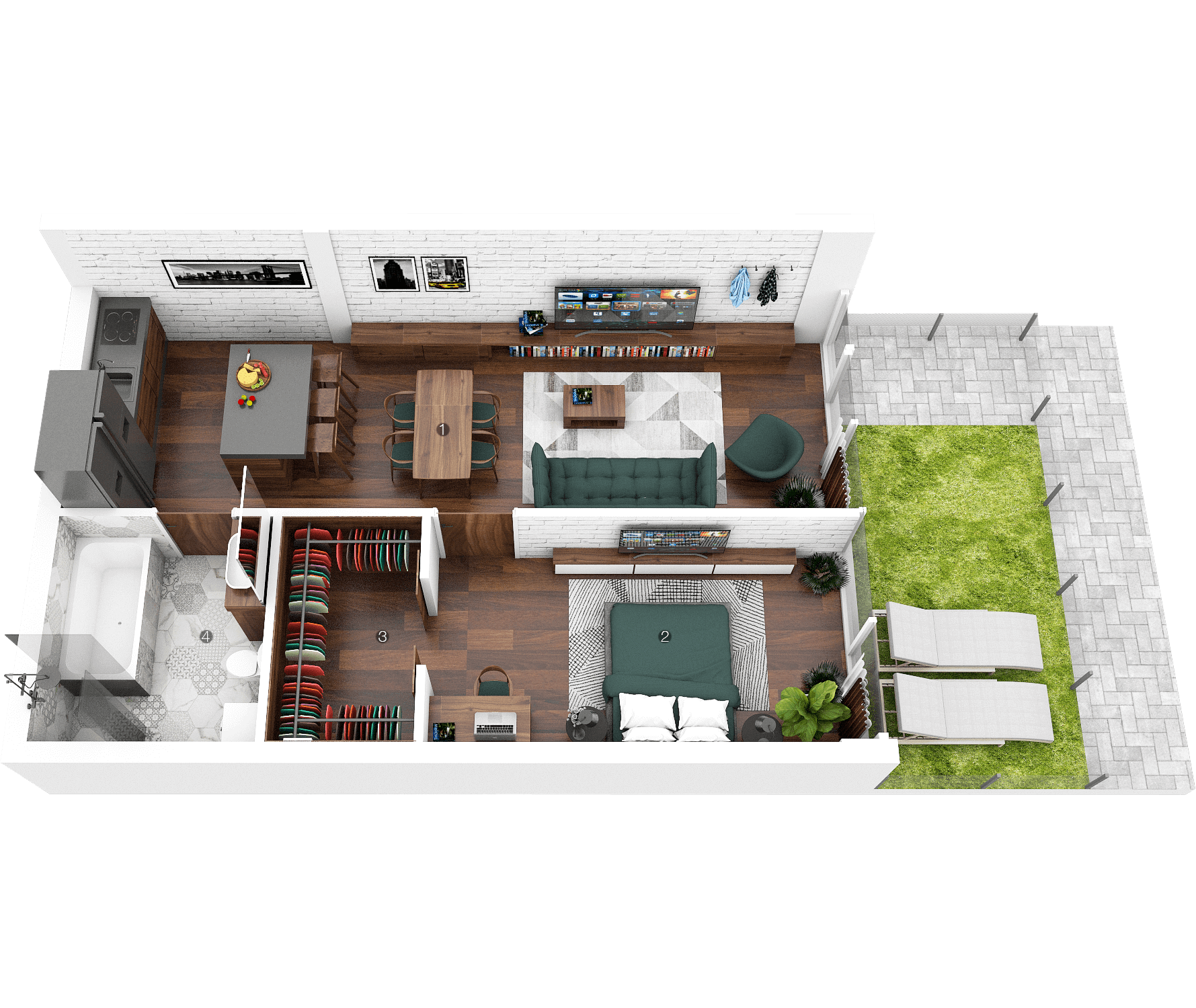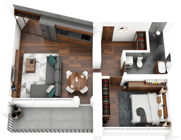 - Bendras plotas: 45.60 m²