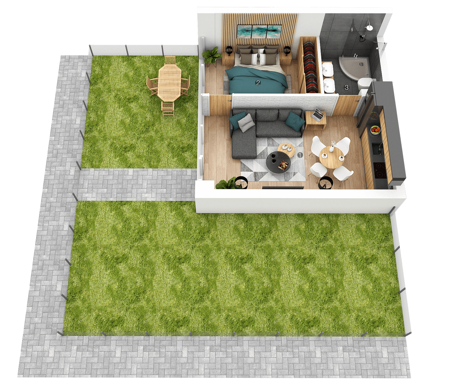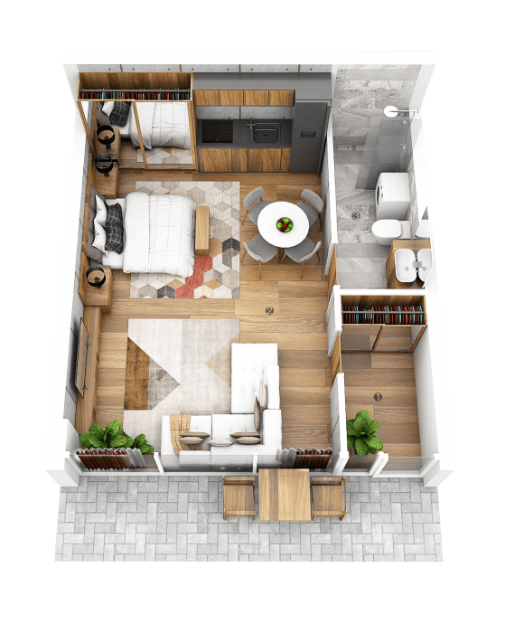Butų su kiemeliais išplanavimai