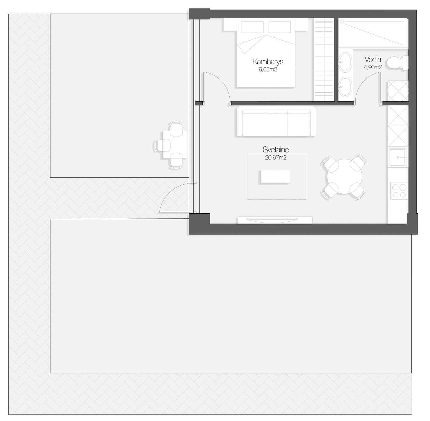 - Svetainė: 20.97 m²