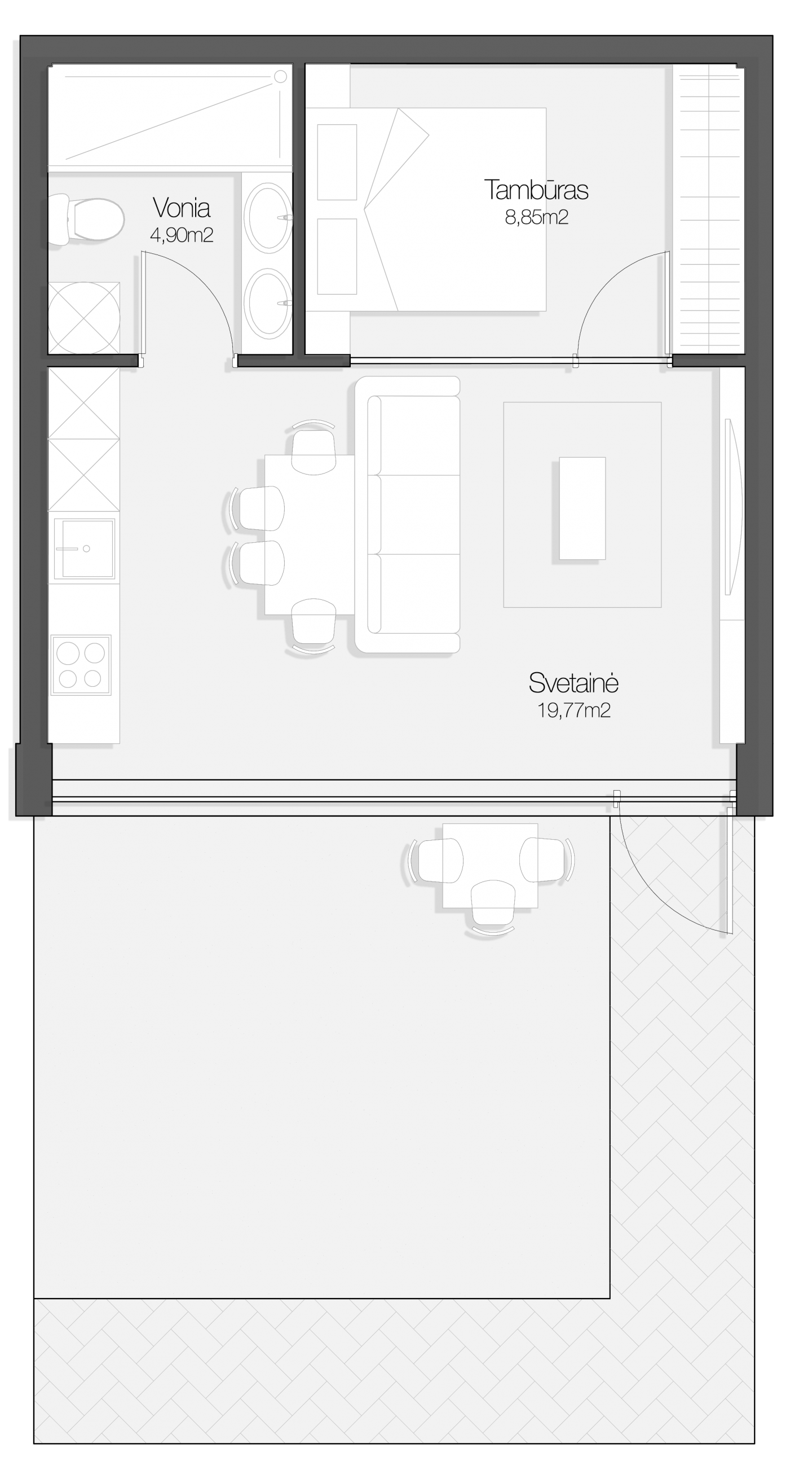 - Svetainė: 19.77 m²