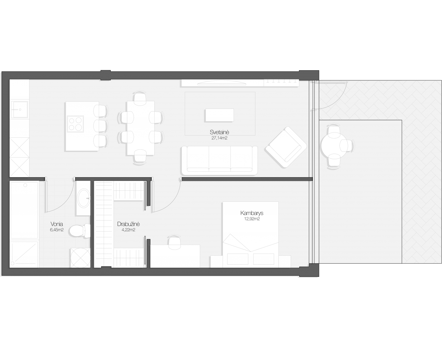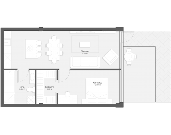 - Svetainė: 27.14 m²
