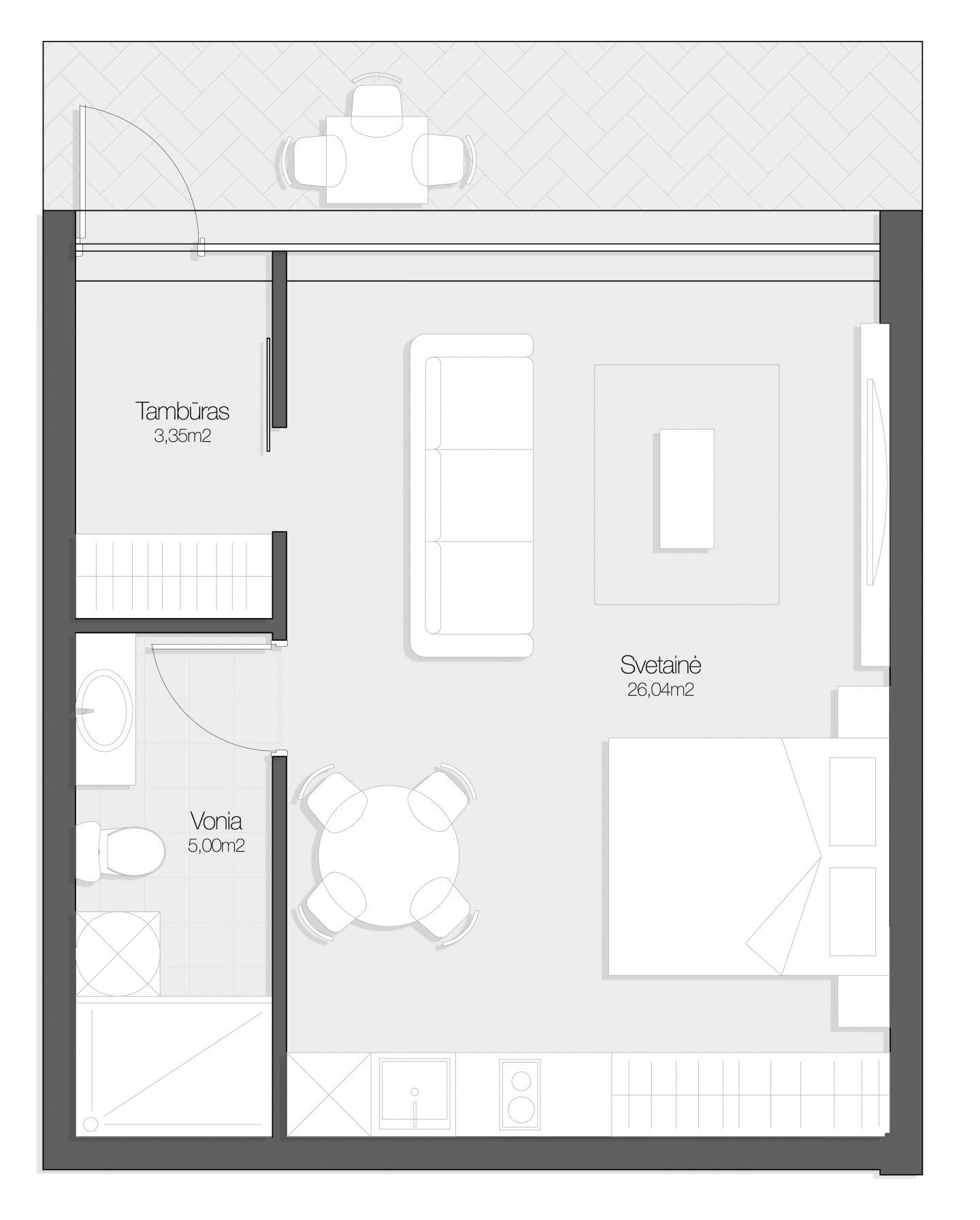 - Svetainė: 26.04 m²